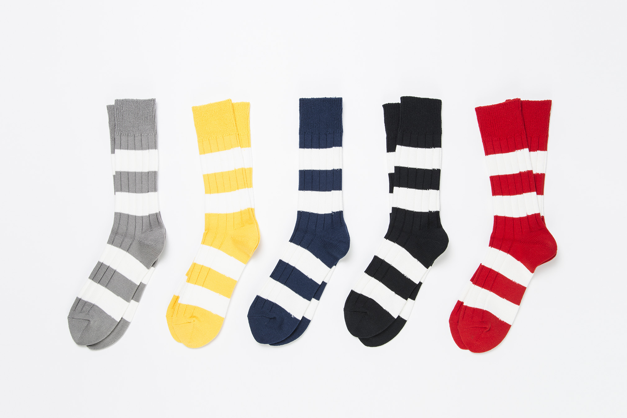 太いピッチのボーダーのローゲージリブソックス。めちゃかわいい。