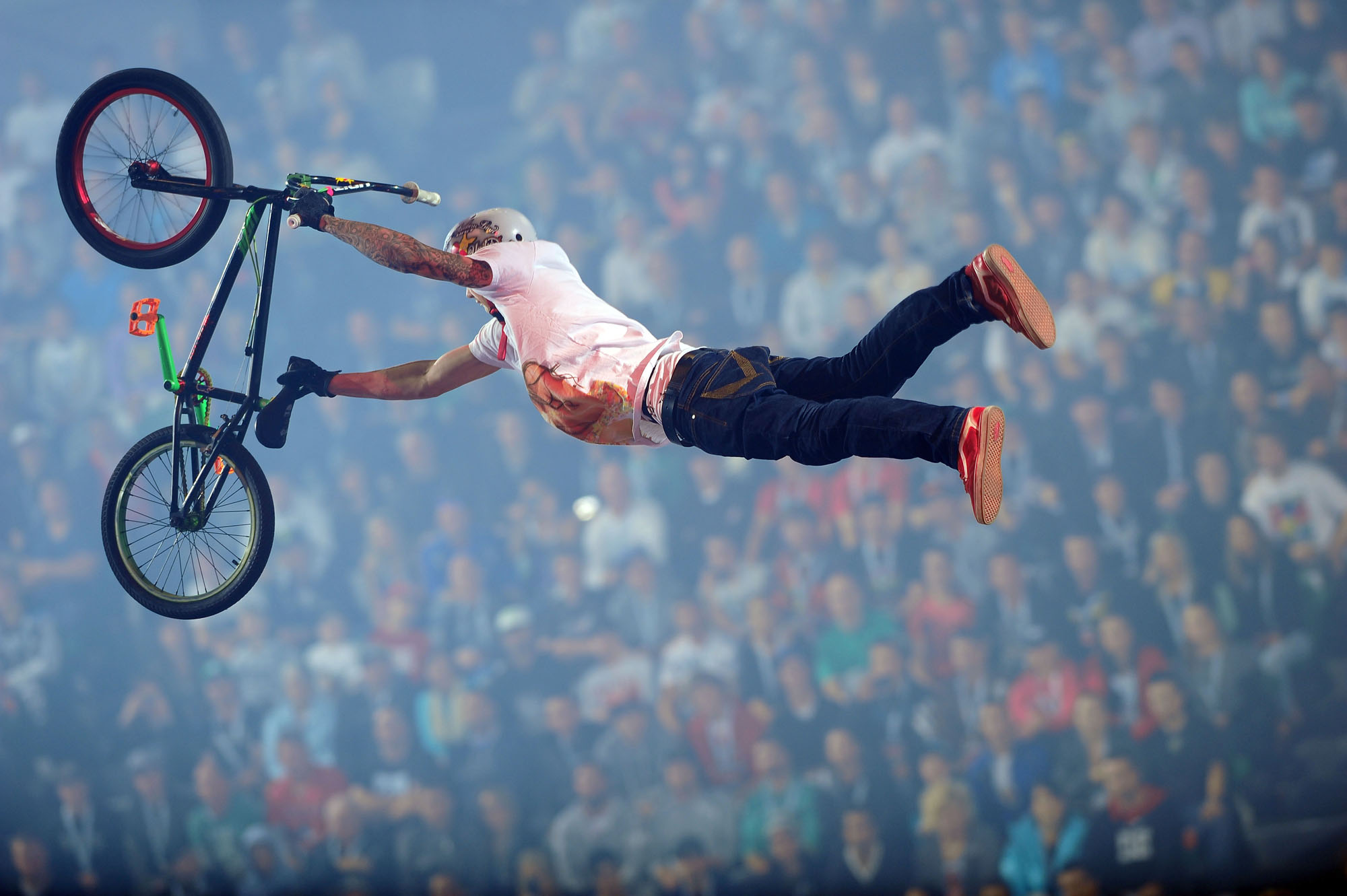 「ナイトロ・サーカスライブ」は、高さ15メートルのジャンプ台からFMX(モトクロスバイク)、BMX(⾃転⾞)、スケートボード等から繰り広げられるワイルドなスタントショー!!2010年からワールドツアーをスタートさせ、その規模は毎年拡⼤。現在までに17か国63都市で150万人以上動員。欧米をはじめ各国で完売を記録。「ナイトロ・サーカスライブ」が、今まさに、世界を席巻しています!FMX(バイク)、BMX(自転車)以外にも、スケートボード、インラインスケートのほか車椅子、木馬、三輪車、キックボードなど車輪のついているものならなんでも飛んでしまう!