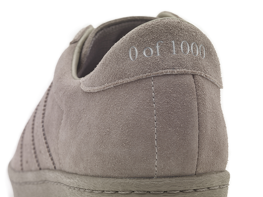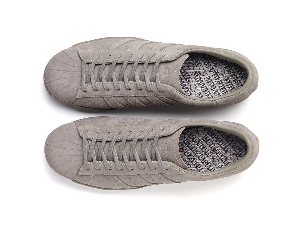 また、その硬い質感の印象とは対極に、とても柔らかなスエードレザーをMetropolisのアッパーに採用しており、コンクリートの上で並べてみるととても対照的。そして、このSuperstarで最も驚くべきところはアイコニックなつま先である、シェル・トゥに同じスエードが使用されているところ。