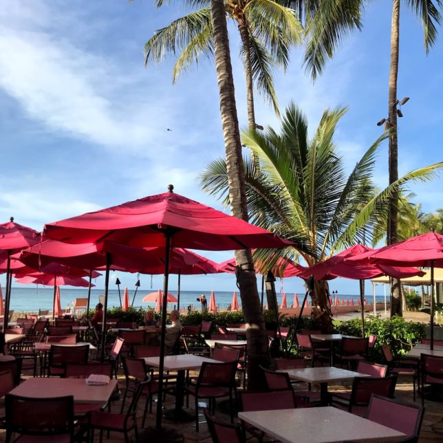 ワイキキビーチの中でも、一際目立つ美しさ。このホテルの朝食を初めてハワイにきた2014年にも食べたと妻がいう。