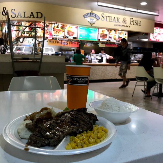 ほろ酔いのまま、アラモアナセンターでの夕食はニューヨークステーキ。ハードなエクササイズの後には肉が一番。回復の速さが違う。ホノルルラストナイトとステーキを噛み締めた。