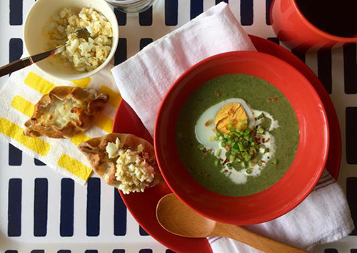メニュー:カレリアパイ、茹で卵入りほうれん草のスープ、コーヒー
