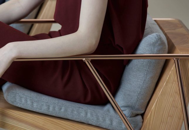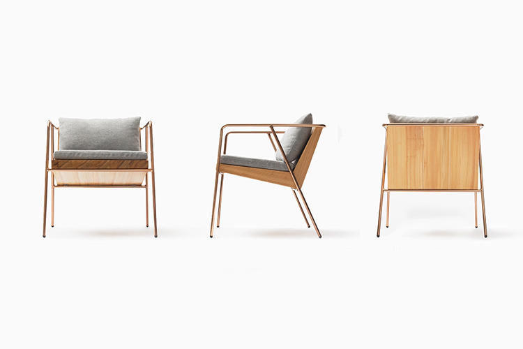 MASS Series Dining Chair (Prototype) Natural Wood & Copper Frame W590 D670 SH420 AH610