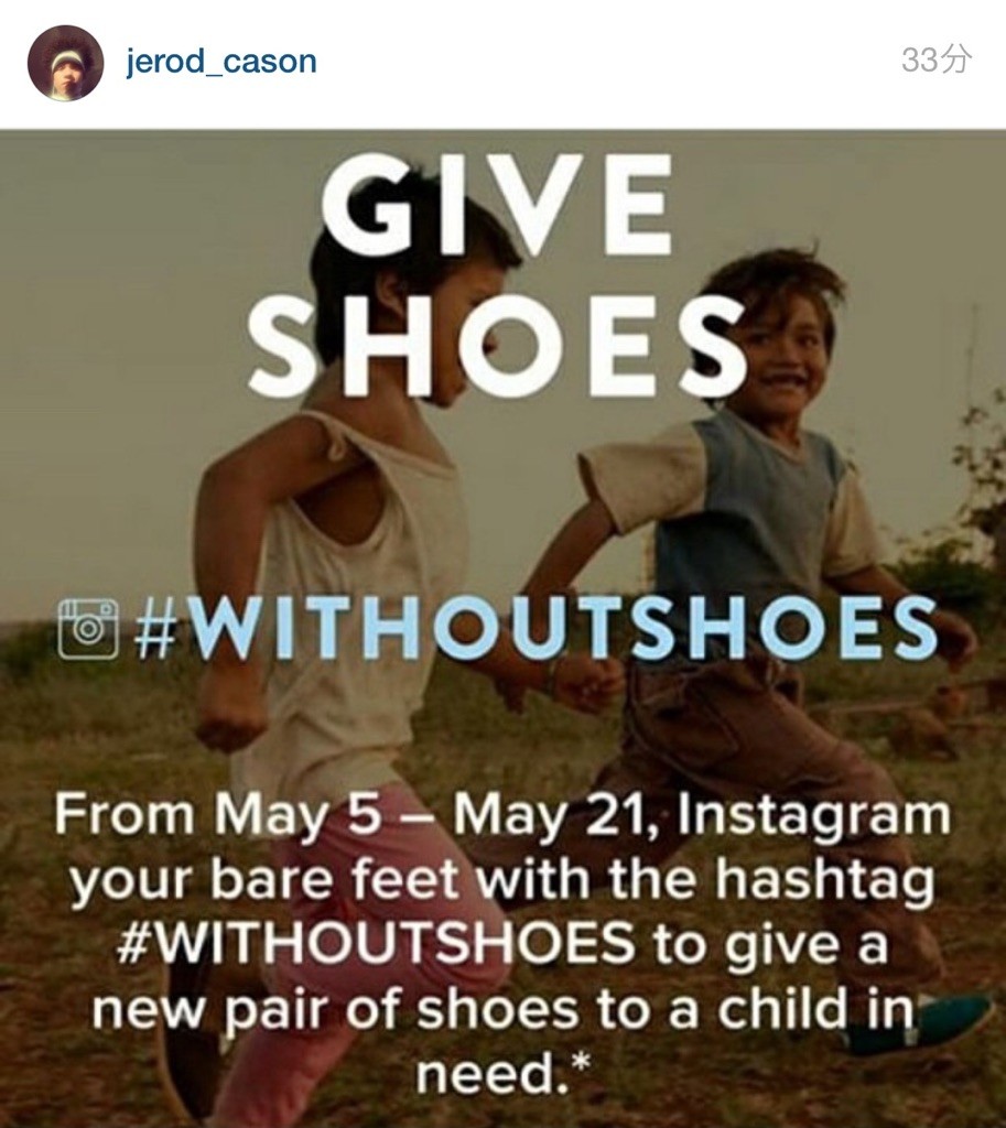 TOMSは世界的に「ONE DAY WITHOUT SHOES」と銘打ち、1日裸足でいることを体験し、靴の重要性の再確認を目的とした取り組みを毎年実施している。そして今年はインスタグラムでのキャンペーンを取り組んでいる。