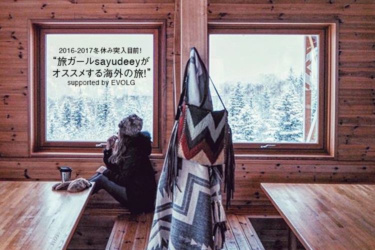 “sayudeey”さんは世界を旅する「旅ガール」として情報発信している女性。2016年もすでに台湾、最近では北海道と国内外問わず、見たことのない景色を見たり、その土地の匂いを感じたりと旅を続けている。今回の企画では、sayudeeyさんの冬休みにオススメのお気に入りの場所、旅にオススメの便利グッズ、そして、お気に入りのEVOLGをご紹介していただきました。