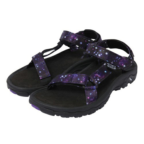 今回のコラボは、最高のクッション性を誇るHURRICANE XLTモデルをベースに、X-girlの人気テキスタイルである宇宙柄をストラップに起用している。